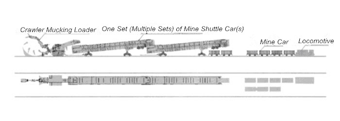 (2) استخدام السيارات مكوك الألغام إلى جانب النفايات الصخرية تفريغ لسيارتين الألغام في كل مرة.