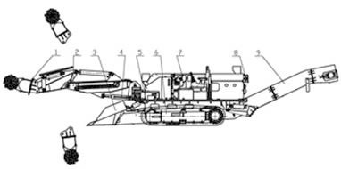 يتكون هذا الرأس الطريق أساسا من قطع آلية، آلية تحميل، آلية، والتجمع الإطار الرئيسي نقل، آلية، ظهر جهاز الدعم، والنظام الهيدروليكي، نظام توزيع المياه، وآلية الرقابة والنظام الكهربائي السفر.